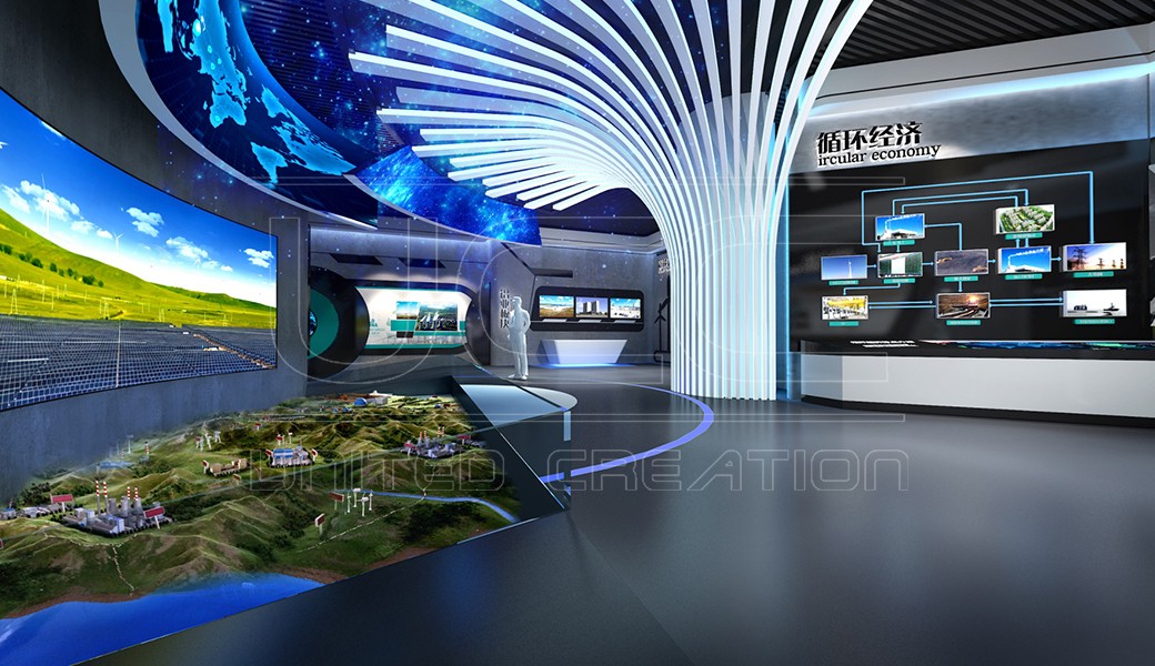 國家電投集團內(nèi)蒙古能源展廳以“美麗中國,能源之夢”為主題,運用多媒體設備與燈箱展板相結(jié)合、傳統(tǒng)展覽方式與視頻播放相結(jié)合,采用多重互動體驗的展示手法,以圖片、文字、實物、沙盤模型等形式詳實的展示了公司的發(fā)展歷史、企業(yè)規(guī)模、經(jīng)營管理、企業(yè)文化等內(nèi)容。