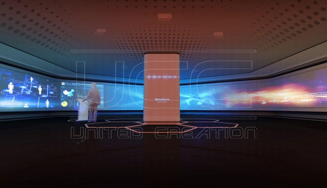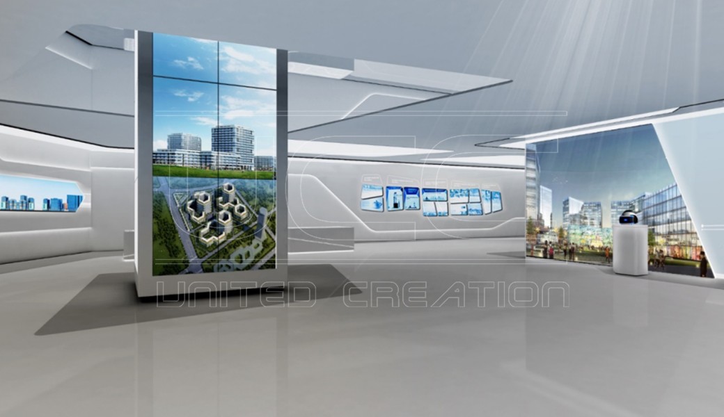 規(guī)劃館遵從三個(gè)設(shè)計(jì)原則:1、室內(nèi)布展與建筑本體協(xié)調(diào)統(tǒng)一,展館整體疏朗通透,同時(shí)在設(shè)計(jì)中部分運(yùn)用建筑“晶格”元素;2、兼顧社會(huì)經(jīng)濟(jì)效益,力求布展科技手段實(shí)現(xiàn)實(shí)用性和經(jīng)濟(jì)性的統(tǒng)一;3、綠色低碳,在展廳材質(zhì)選擇中,采用環(huán)保材質(zhì)。充分考慮后期維護(hù)及展陳內(nèi)容更換,保證展示的延展性與可控性。展館以園區(qū)優(yōu)勢(shì)為核心,銜接高新概況和園區(qū)全景兩大模塊,打造具有鮮明濟(jì)南特色、創(chuàng)新谷特色的智慧互動(dòng)型產(chǎn)業(yè)園區(qū)規(guī)劃展館。
